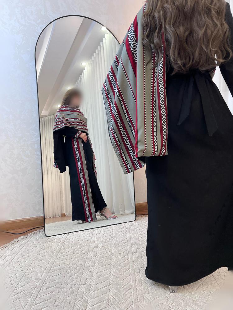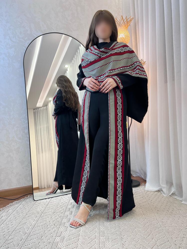 جلابية دالينا مع بشت السدو و الوشاح اللون الاسود و الخامه باربي تتميز بلون يُضفي عليها أناقة وفخامة لا مثيل لها مما يجعلها الخيار الأمثل في المناسبات.