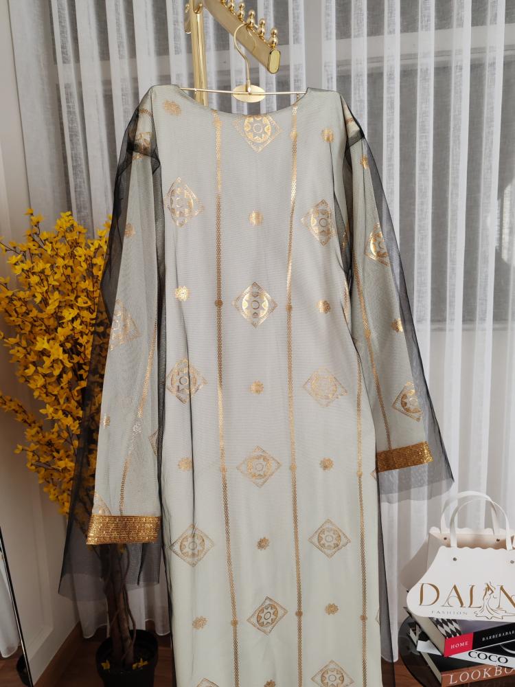 جلابيه ابيض مع بشت تطريز كمبيوتر ذهبي تضفي لك تميز رايع