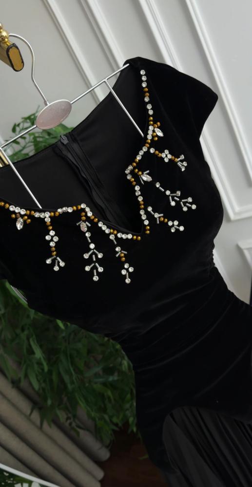 فستان سهرة خامه جوخ و شيفون كسرات من دالينا تميزي بأفخم اطلاله مع هذا الفستان و ابهري جميع الحضور في كل المناسبات و السهرات الخاصه