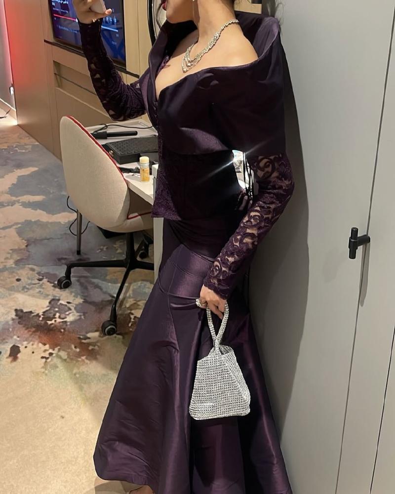 فستان سهره خامه جورجيت مع دانتيل من دالينا تميزي بأفخم اطلاله مع هذا الفستان و ابهري جميع الحضور في كل المناسبات و السهرات الخاصه