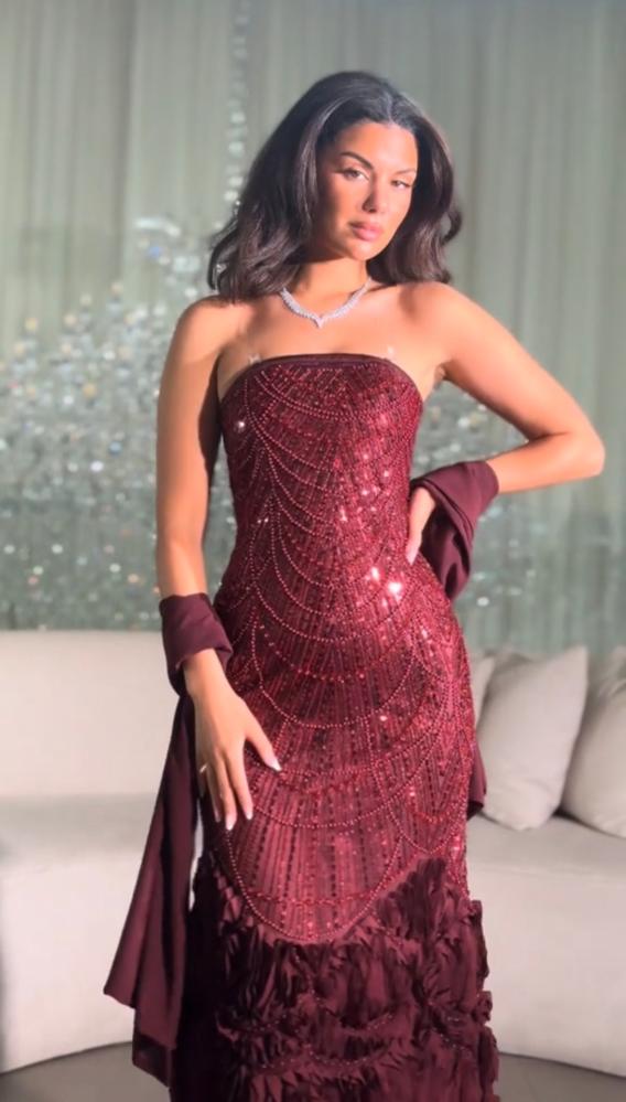 فستان سهره خامه تل مطرز بخرز من دالينا تميزي بأفخم اطلاله مع هذا الفستان و ابهري جميع الحضور في كل المناسبات و السهرات الخاصه