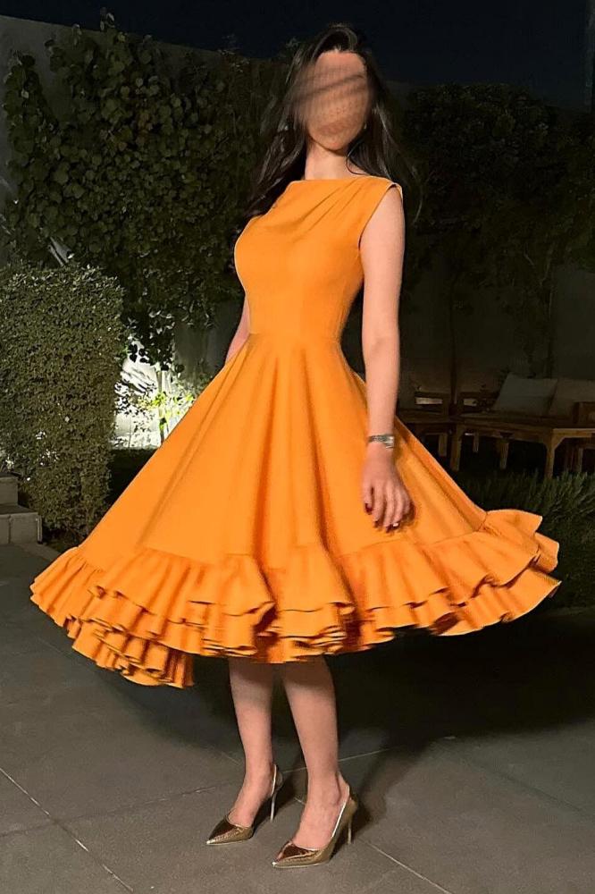 فستان ناعم اورنج قماش خامه باربي من دالينا يضفي لمسه من الجمال و التميز يجعلكي متميزه بين جميع الحضور و في كل المناسبات و الحفلات الخاصه